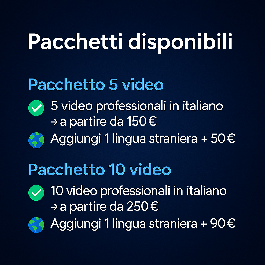 Con i nostri pacchetti hai contenuti pronti, di qualità e in qualsiasi lingua, senza dover perdere tempo o avere competenze tecniche.