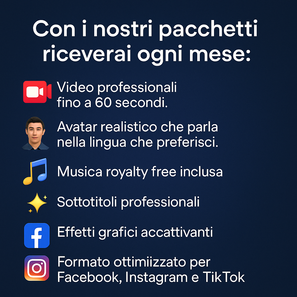 Video professionali con avatar in tutte le lingue, pronti per i tuoi social.